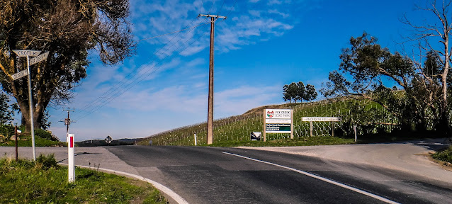 A crest in the road comes up quickly after the last bend and it's here that we leave the bitumen and turn right down Croft Rd